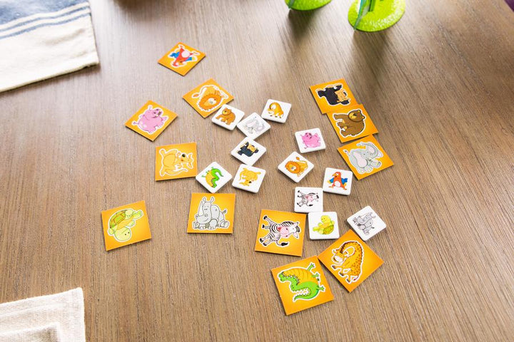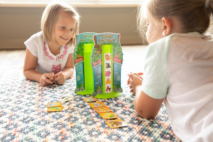 Then take a trip to the zoo! Players each choose their tiles and then secretly place their animals into their tower. On each turn, players ask a yes/no question to determine the order of the animals from top to bottom in their opponent’s tower. Crack the code and win! For 2 players. For ages 5+.