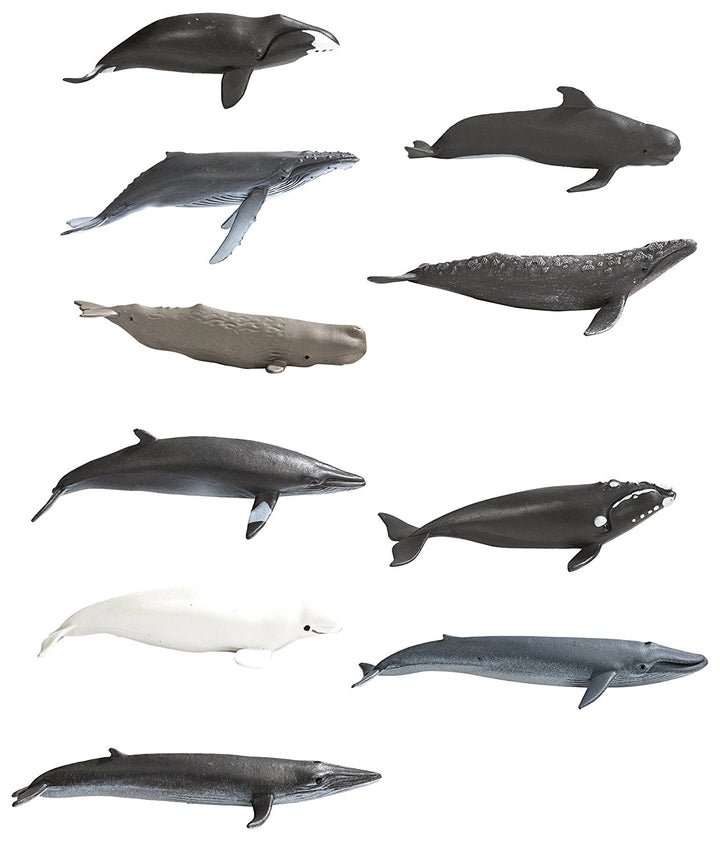 • SO MANY WHALES ‚Äì Whales are some of the largest animals in the world, but we‚Äôve shrunken them down to fit in this TOOB! This set features 10 whales including a blue whale, Bryde‚Äôs whale, minke whale, right whale, bowhead whale, humpback whale, gray whale, beluga whale, pilot whale and sperm whale.